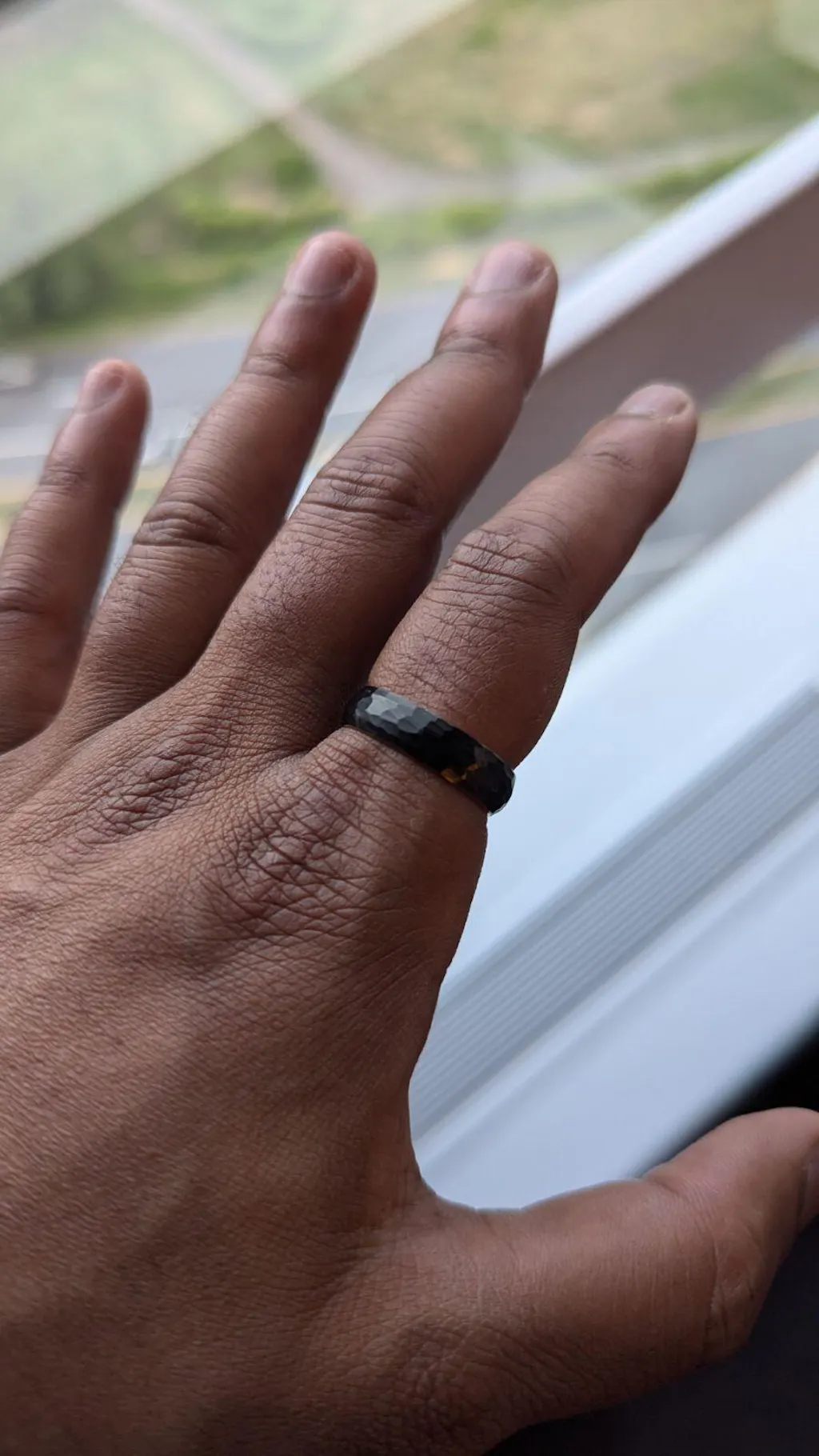 Other Details: Black hammered outer ring and rose gold inner band
