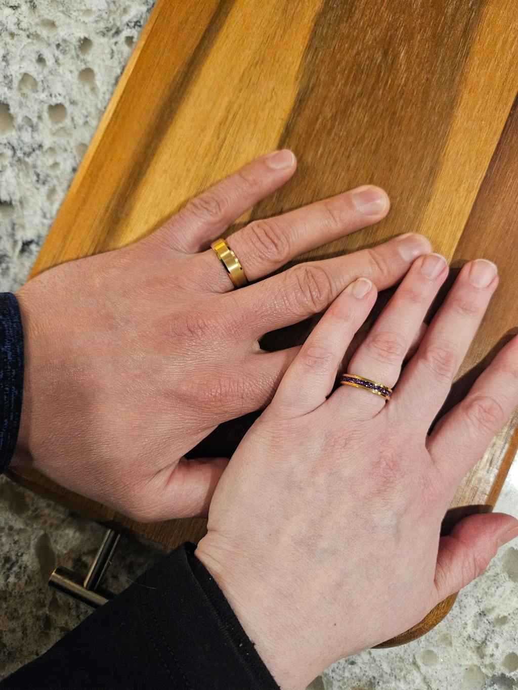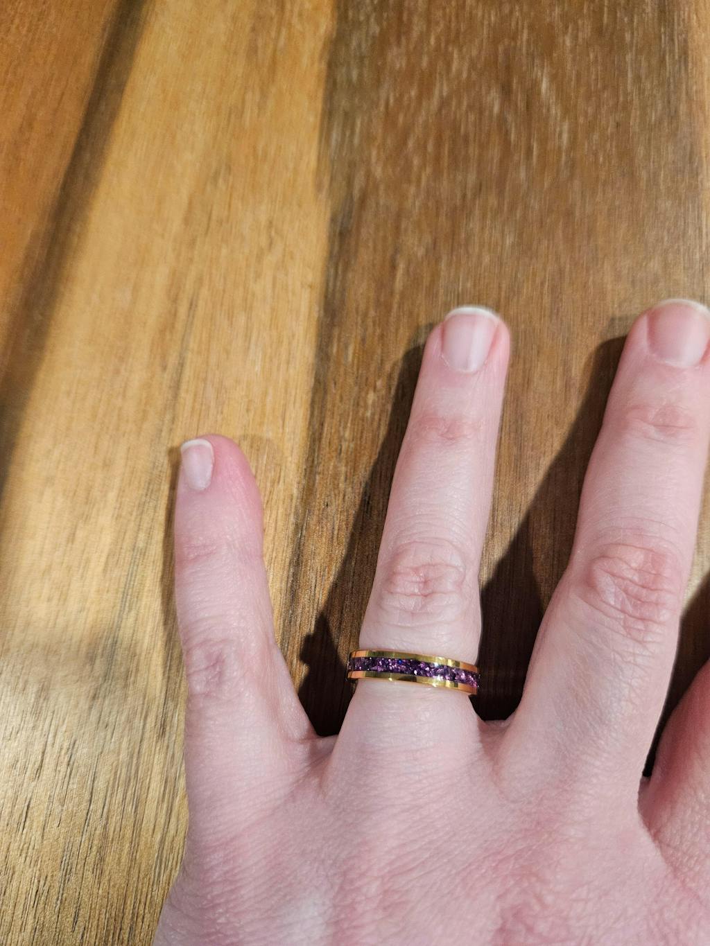 Yellow Gold 4mm Tungsten Ring with Amethyst Inlay โ a harmonious union of strength and serenity. The robust tungsten exterior meets the calming allure of amethyst, creating a ring that not only exudes timeless elegance but also holds potential healing properties. Amethyst, known for its soothing energy, is believed to enhance spiritual awareness and promote tranquility. Elevate your style while embracing the benefits of this beautiful gemstone, making this ring not just a symbol of commitment but a source of positive energy. Discover the perfect blend of durability and mindfulness with our Tungsten and Amethyst masterpiece.