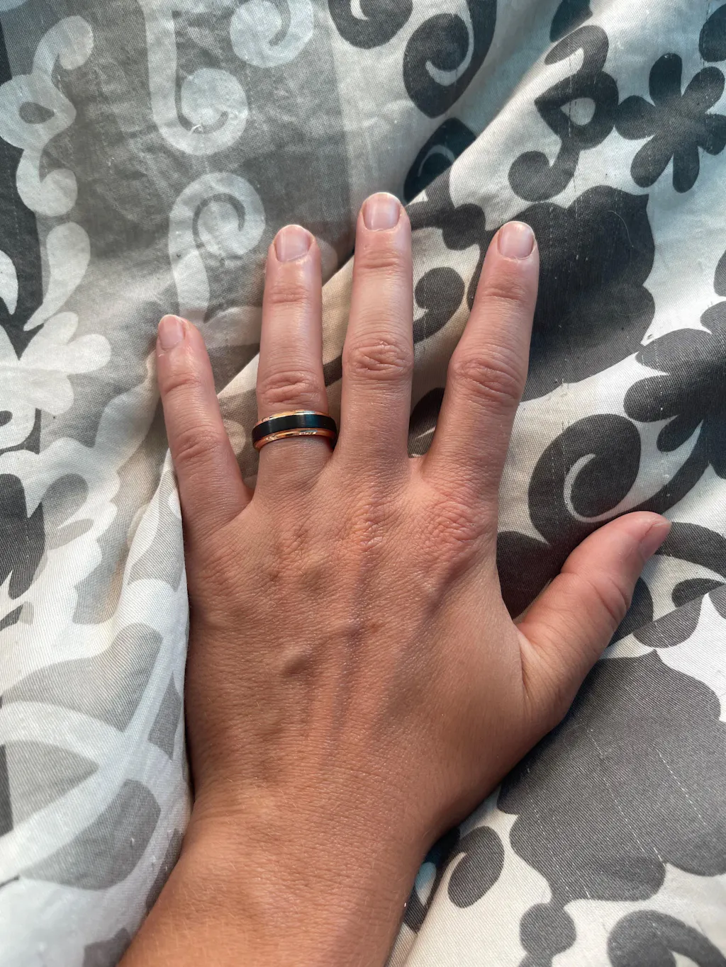 Other Details: Black satin finish with rose gold plated edges and inner band